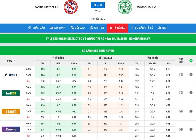 - biến động kèo real-time