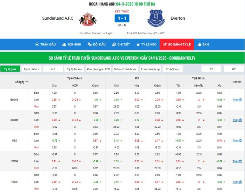 Tỷ số trực tuyến – Theo dõi diễn biến trận đấu như xem live