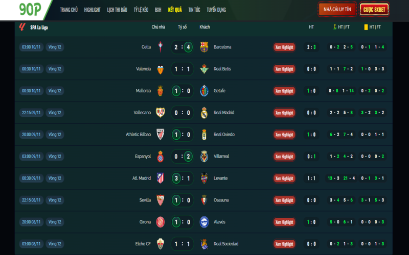 Điểm khiến người dùng ấn tượng khi truy cập 90phut TV chính là khả năng cập nhật tỷ số gần như theo thời gian thực. Từ bàn thắng, thẻ phạt cho tới thống kê tấn công hay kiểm soát bóng, tất cả đều được hiển thị rõ ràng và chi tiết. Sự chính xác này đặc biệt quan trọng đối với những người yêu thích đặt cược trong khi trận đấu đang diễn ra.