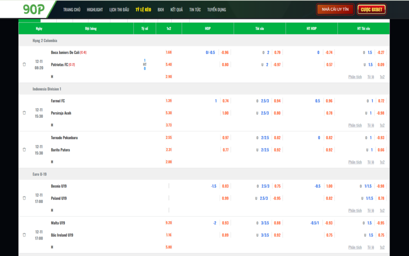 Trong thế giới cá cược thể thao đầy biến động, tốc độ và độ chính xác của thông tin luôn là yếu tố then chốt quyết định thành công. Việc nắm bắt diễn biến trận đấu từng phút, cùng với khả năng dự đoán tỷ lệ kèo chính xác, là điều mà bất cứ người chơi chuyên nghiệp nào cũng mong muốn. Giữa hàng loạt nền tảng trực tuyến, 90P đã khẳng định vị thế của mình như một “trợ thủ” đắc lực, giúp người dùng theo dõi tỷ số, kèo cược và phân tích trận đấu với độ tin cậy cao.