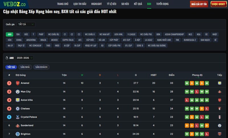 - Bảng xếp hạng & lịch thi đấu cập nhật liên tục: Anh em và tôi chỉ cần một lần truy cập là có thể nắm trọn lịch thi đấu trong ngày, theo dõi vị trí các đội bóng ở mọi giải, không lo bỏ lỡ trận nào.