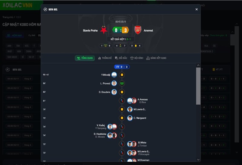 - Kết quả bóng đá: Xoilac Vnn cập nhật kqbd tức thì về tỷ số, thẻ phạt, cầu thủ ghi bàn và thống kê toàn trận.